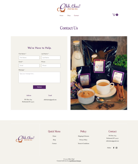 As demand for their delicious blends began to grow, Ohh, Chai! turned to me to bring their vision online. The result is a clean, user-friendly e-commerce site that makes it easy for customers to order their favorite flavors from the comfort of home.